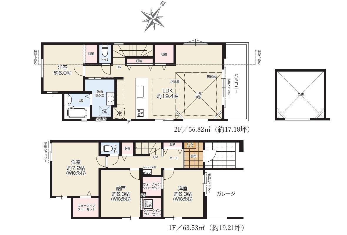 1階6.3帖の洋室です。 1階居室の全居室にWICを完備! どのお部屋も使いやすい綺麗なサイズです。