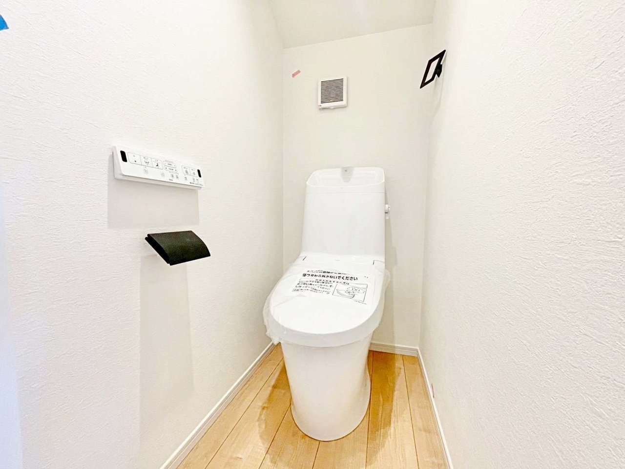 トイレは各階に設置されています。 ウォシュレットも完備! さらにタオルホルダーなども付いています。