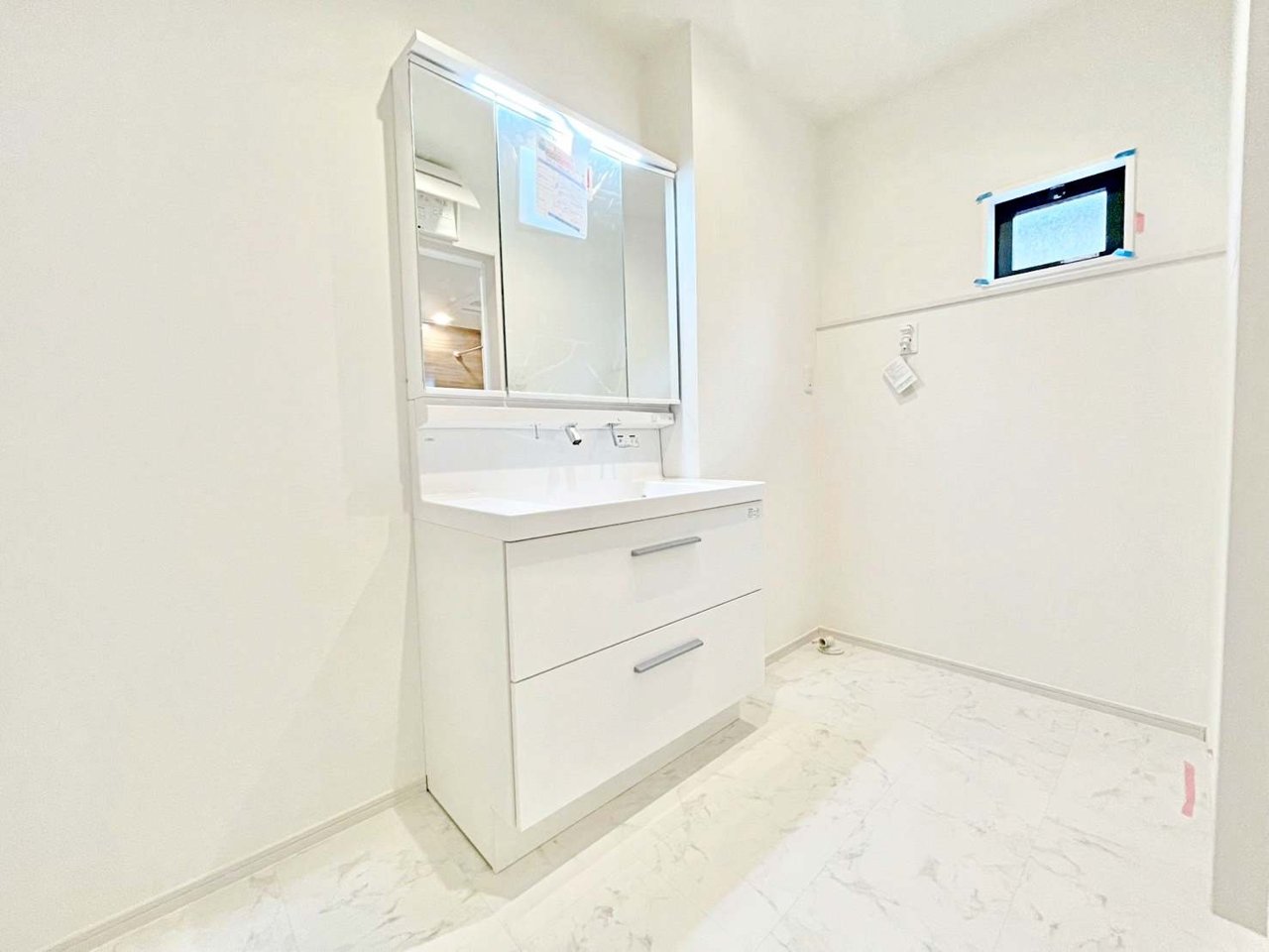 洗面スペースは2階にございます♪ 水回りが2階に集約された動線の良い間取りです。 家事の際の移動が少ないのがメリットです。