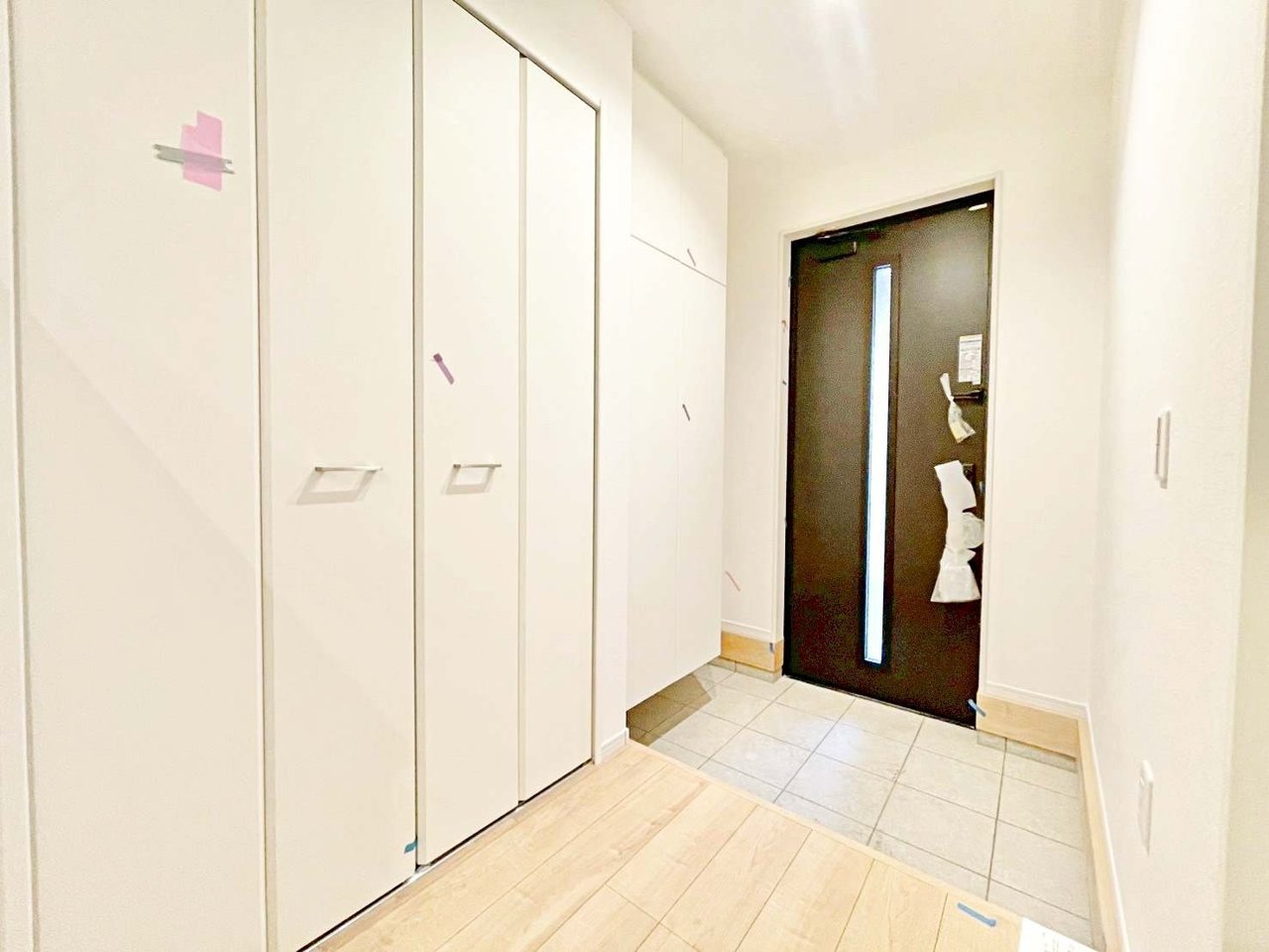 玄関横には大型のシューズボックスも完備しています。 さらに横には収納スペースもありますので、コート類などをこちらに収納することも可能です♪