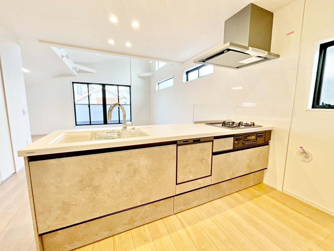 対面キッチンを採用することで、お料理中もリビングを広く見渡すことができるようになっています。 小さなお子様との暮らしも安心ですね♪ 対面キッチンは、お料理の配膳~お片付けまでがスムーズにできます♪