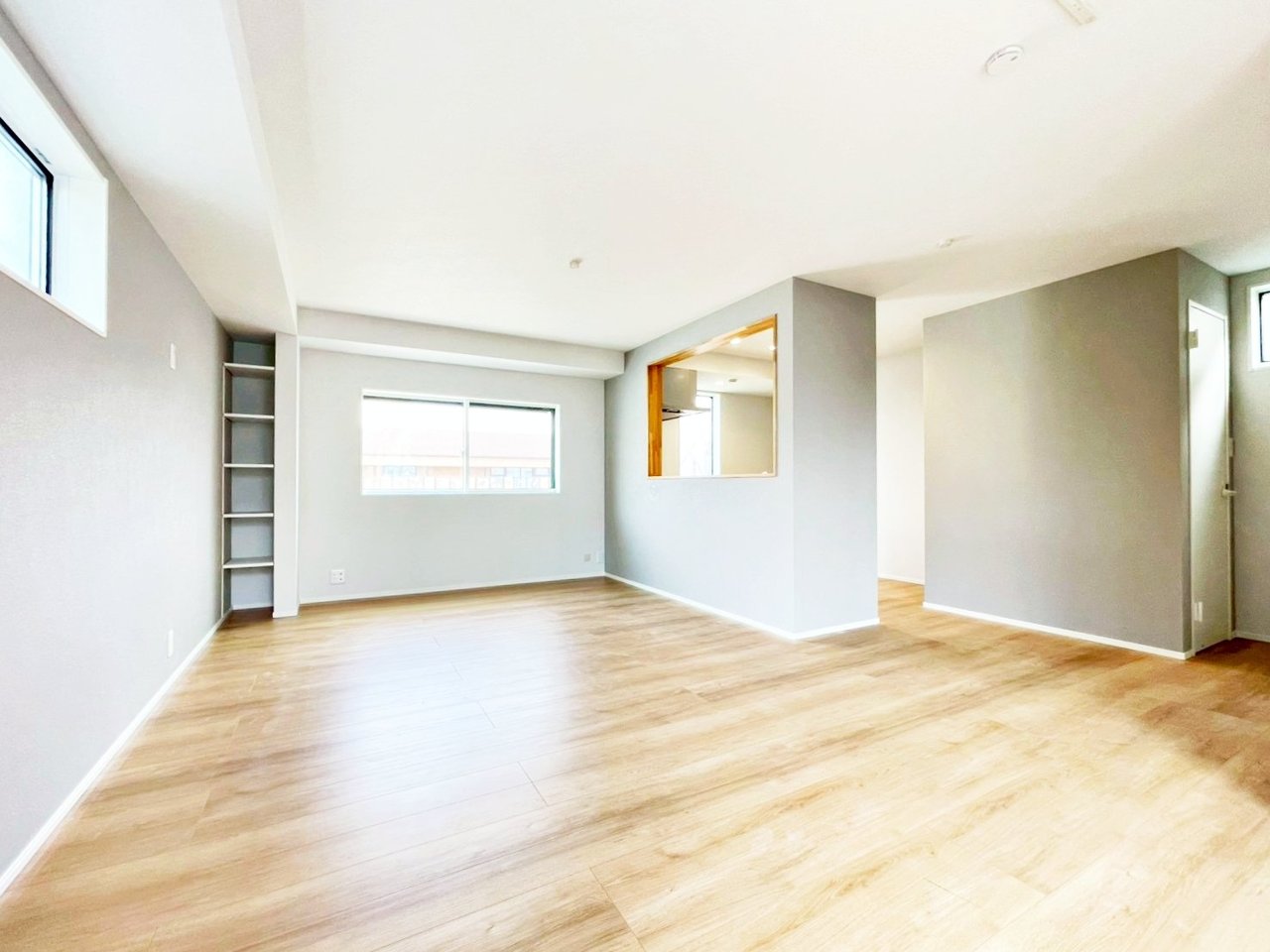 リビングは窓が多く、晴れた日の日中は電気をつけなくても過ごせる明るさがあります♪ テーブルセットとソファを配置しても余裕のあるこの場所で、一家団欒のひと時をお楽しみください!