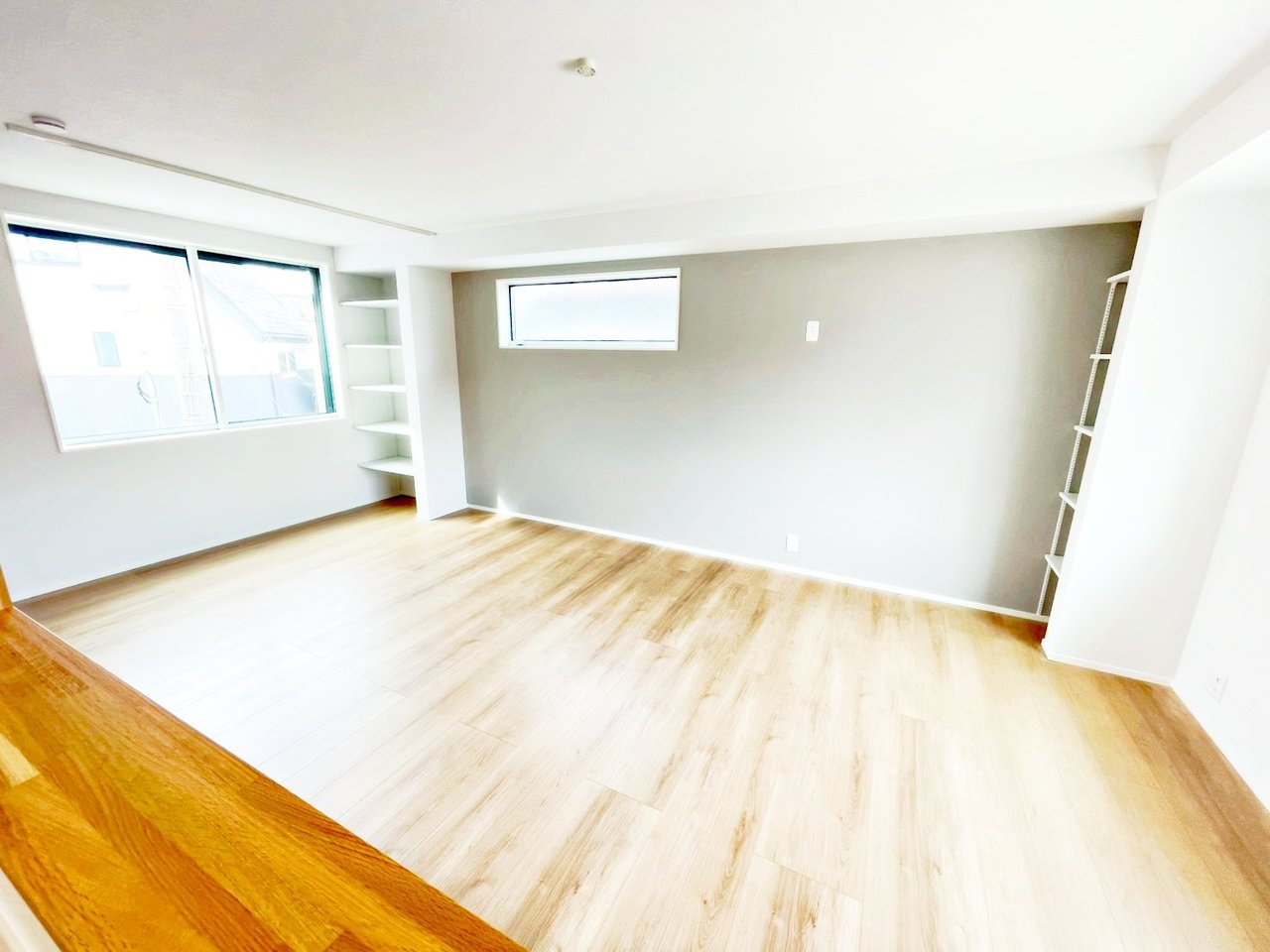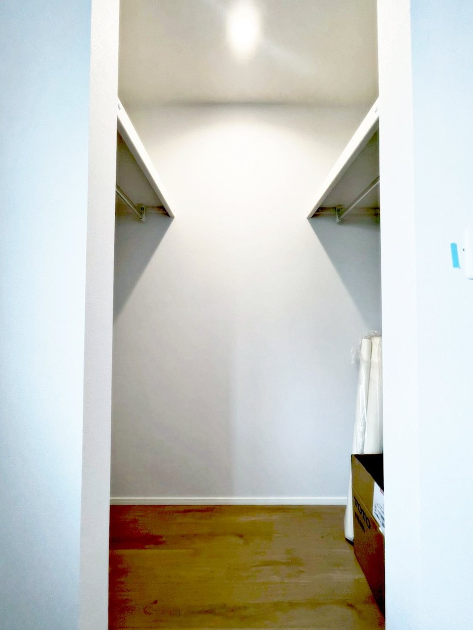 こちらは1階にある6.1帖の洋室。 収納が2種類もあるお部屋です! 通常のクローゼットだけでなく、なんとウォークインクローゼットまでございます♪ 普段使いの衣類や日用品はもちろん、季節物の収納も◎