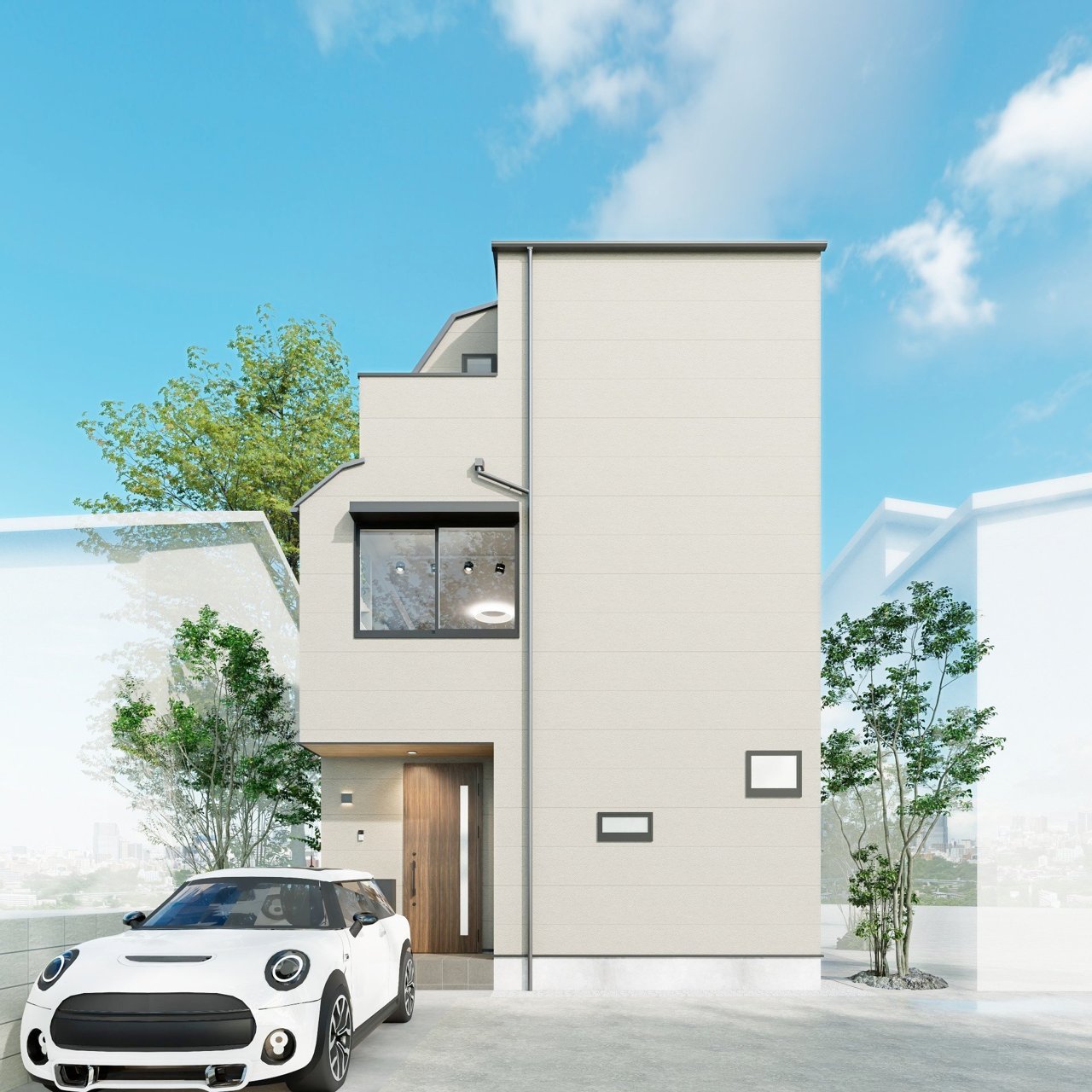 - ※完成予想図はいずれも外構、植栽、外観等実際のものとは多少異なることがあります。
