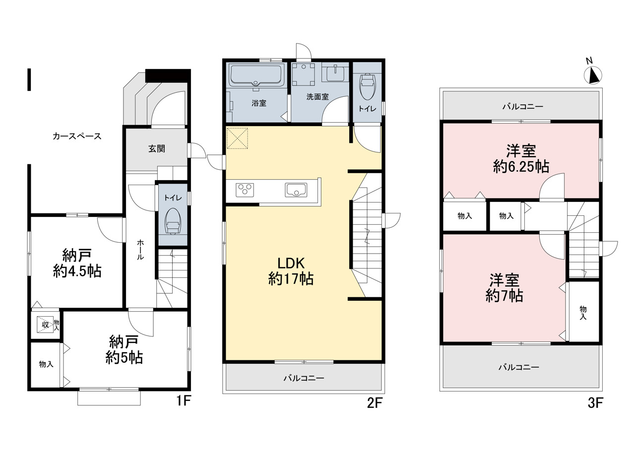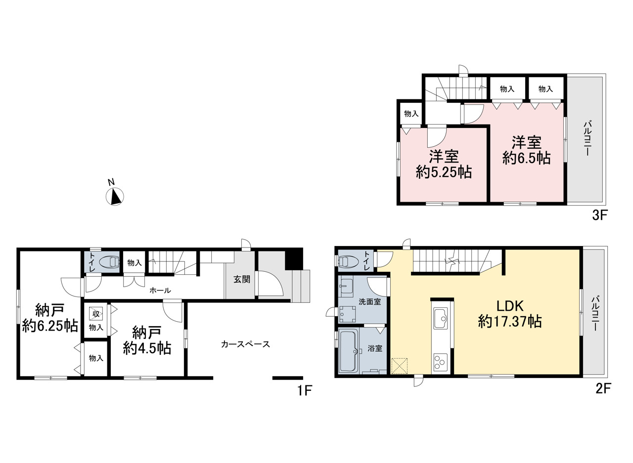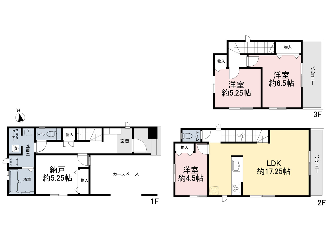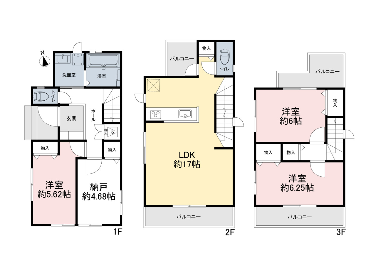 | 土地面積 | 70.25m² ~ 95.82m² (ゴミ置き場持分:3.25㎡×1/17) | ||