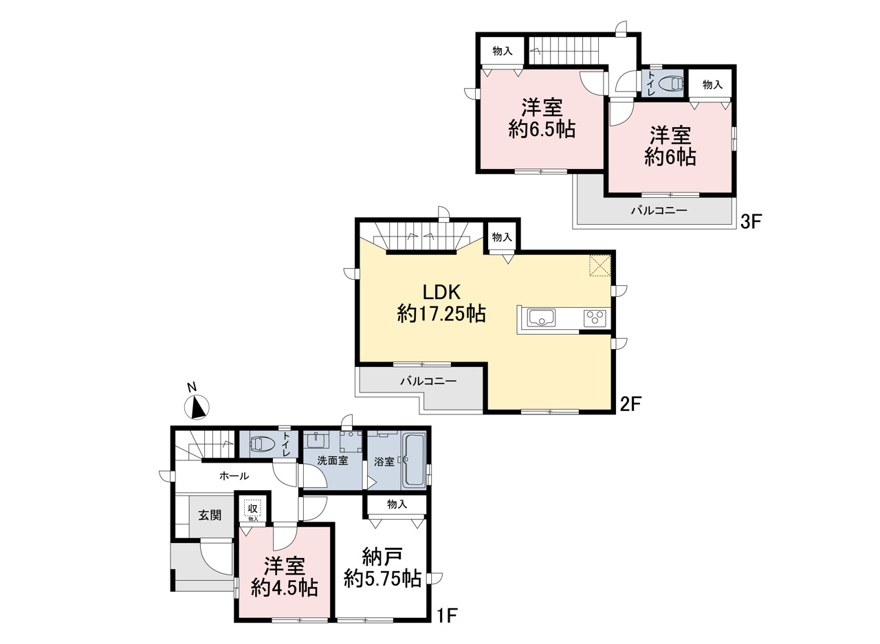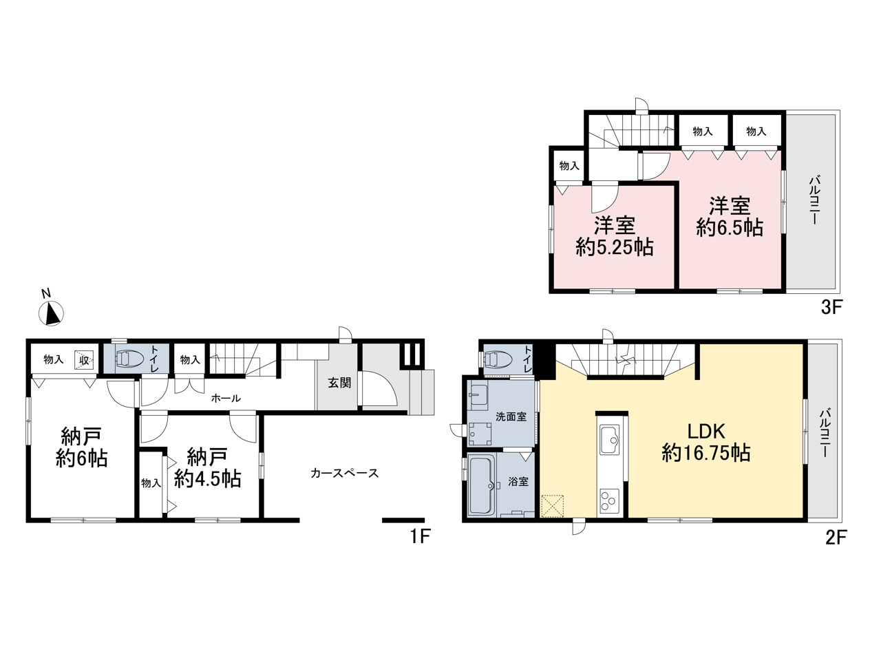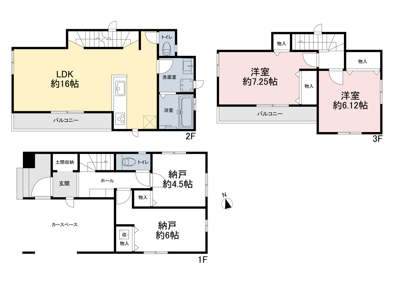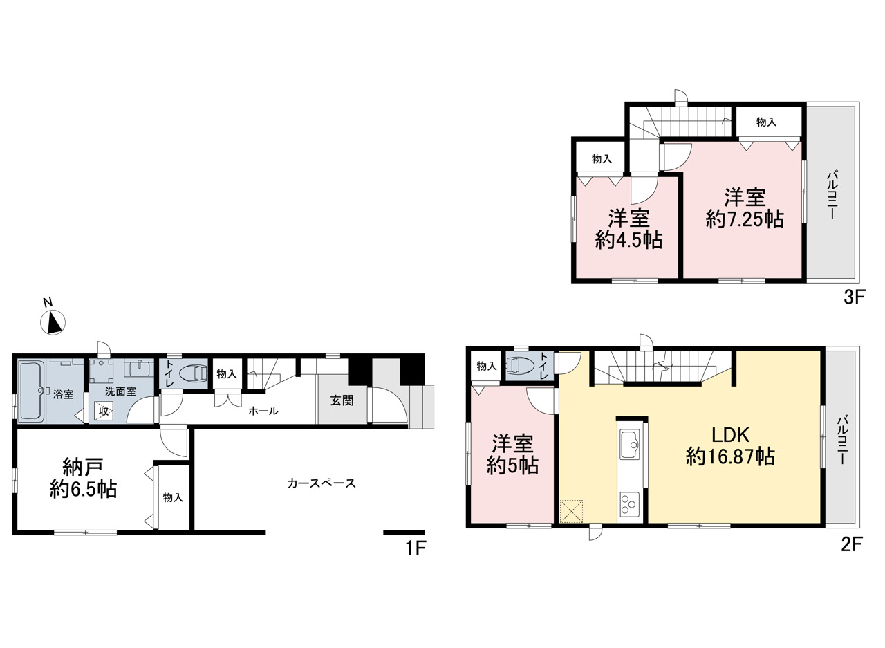 | 土地面積 | 70.25m² ~ 95.82m² (ゴミ置き場持分:3.25㎡×1/17) | ||