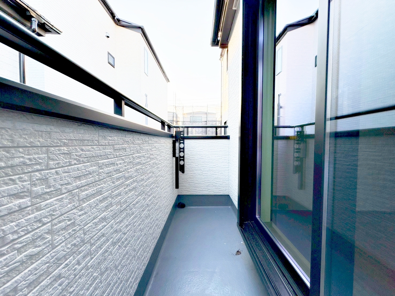 <N号棟> バルコニーは嬉しい南向き! 幅・奥行き共にゆとりある大きさ♪ 衣類はもちろん、お布団もしっかり干すことのできるサイズ感です! 晴れた日のお洗濯が楽しみに♪ ◆0120-1919-80◆
