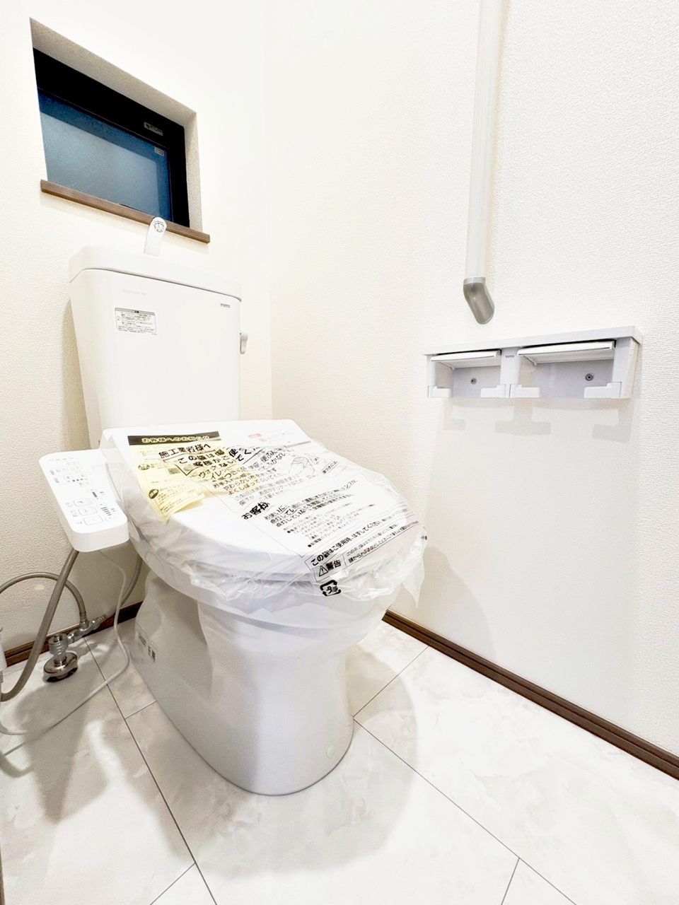 <N号棟> トイレは1階と3階に1つずつご用意しました! 忙しい朝の時間帯でも、混雑なくご使用いただけます♪ 手すりのあるトイレでは、ゆっくり安全に腰を下ろすことができます。 0120-1919-80