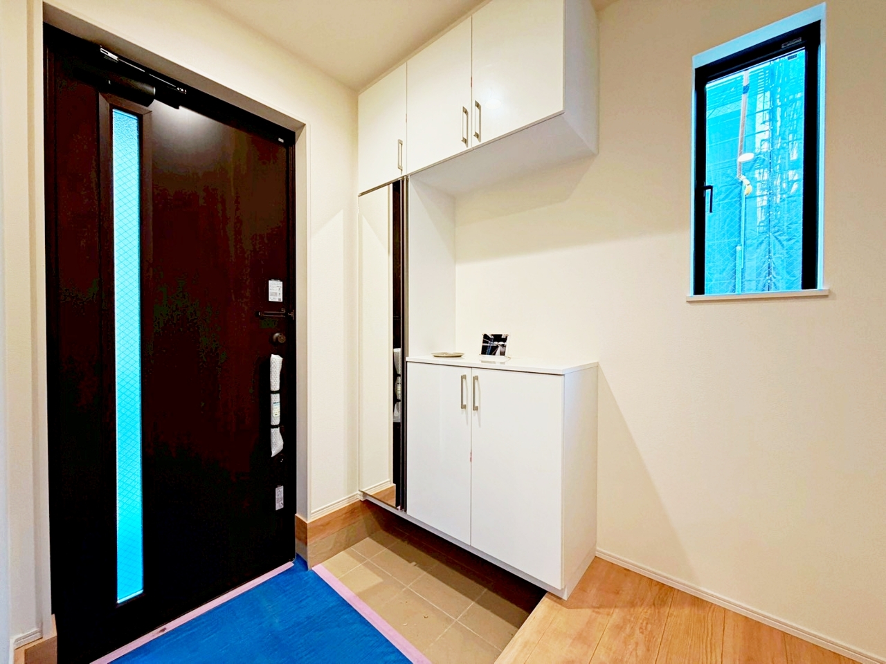 <N号棟> 玄関には全身鏡付きのシューズボックスをご用意しました! お出かけ前の身だしなみチェックはここで♪ 靴だけでなく、ちょっとしたお外用品の収納にも活躍してくれます! ◆0120-1919-80◆