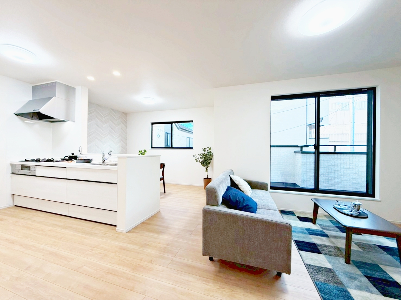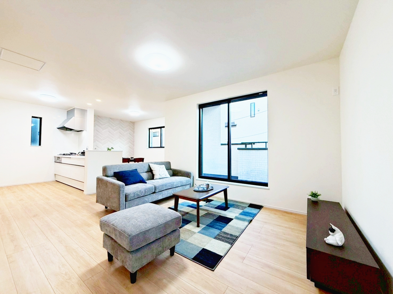 <N号棟> 17.25帖もの広さを有するLDK! テーブルセットとソファを配置しても、まだまだ余裕のある広さです♪ 明るく暖かな窓際は、ご家族憩いの場になりそう♪ ◆0120-1919-80◆